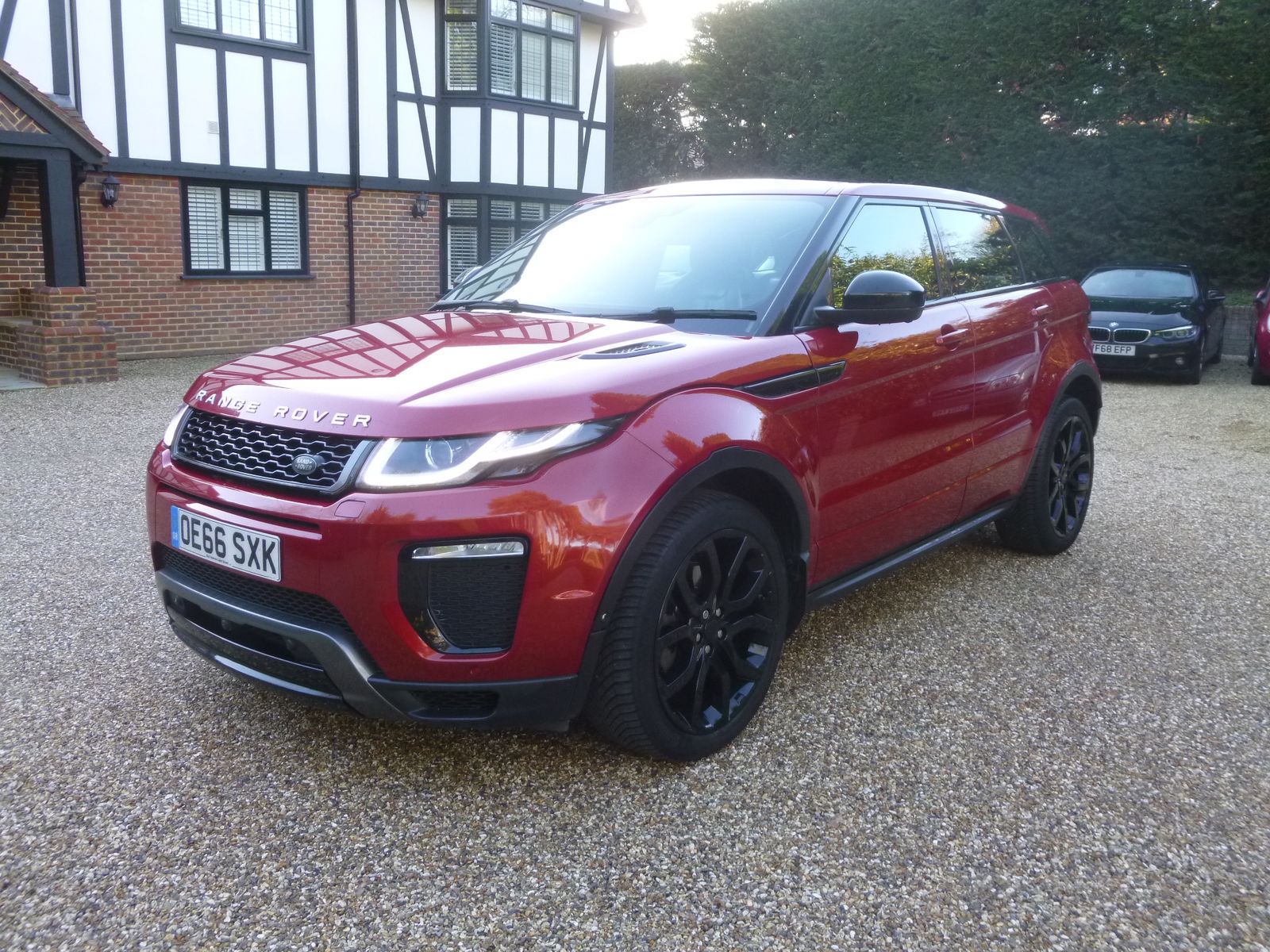 RANGE ROVER EVOQUE 2.0 TD4 HSE DYNAMIC LUX AUTO, 2016/66 reg 2 OWNERS FULL SERVICE HISTORY, FIRENZE RED METALLIC, BLACK PERFORATED LEATHER, PANORAMIC SUNROOF WITH ELECTRIC BLIND, SATELLITE NAVIGATION, KEYLESS ENTRY, HEATED SEATS AND S/WHEEL, ELECTRIC MEM SEATS, FRONT & REAR PARK DISTANCE, 360 CAMERAS, DUAL ZONE CLIMATE CONTROL, POWER BOOT, MERIDIAN SURROUND SOUND, BLUETOOTH PHONE + STREAMING + MEDIA, ELECTRIC H/FOLDING D/MIRRORS, SELF PARK, MULTI FUNCTION S/WHEEL, CRUISE CONTROL, AUTO ZENON H/LIGHTS ITH P/WASH, NEW MOT, 2 KEYS, STUNNING,